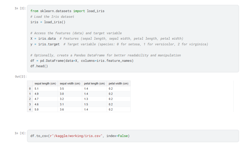 - output your dataset as a file, in this case, I ouput the iris dataframe as a csv file.