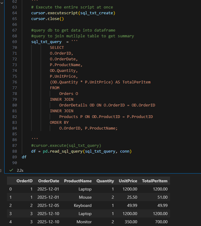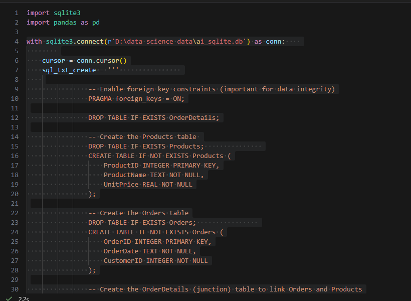 I created a toy database, named it as ai_sqlite db, which contains 3 tables, order, order detail and product.
